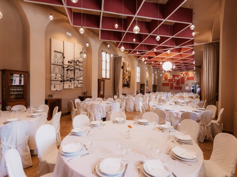 La presenza di un proprio servizio ricettivo e ristorativo permette l’ospitalità di relatori/partecipanti e l’organizzazione di coffee-break, buffet, colazioni di lavoro, cene di gala.